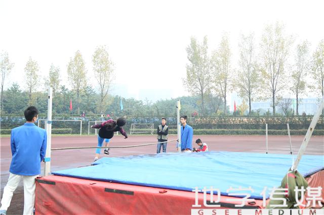 热情四溢的选手们按次序依次就位。地面还有点湿滑,但这完全不能阻挡同学们的热情,他们都在为运动健儿们呐喊助威。10时,伴随着裁判的哨声,甲组女子跳高决赛在北区体育场上正式开始。