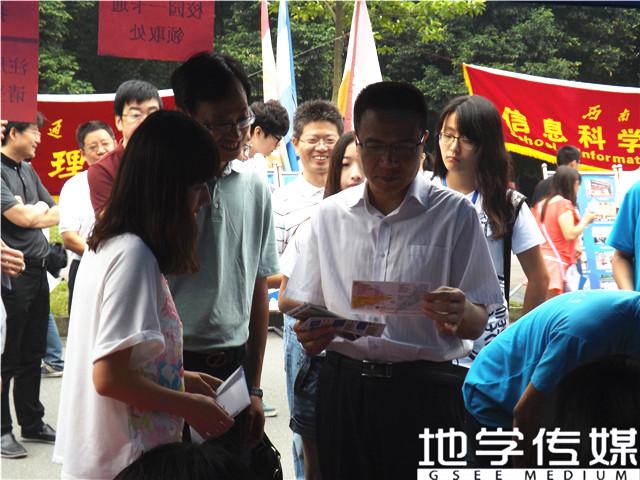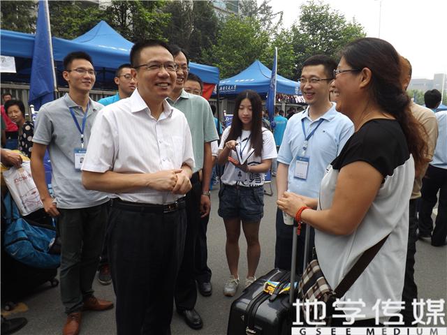 9月3号是迎新工作开展的第二日。上午迎新工作开展得井然有序,徐飞董事长在公司相关负责人的陪同下来到公司迎新点视察,公司党委副书记傅尤刚老师和2014级新生辅导员杨都强老师对徐董事长进行了接待。