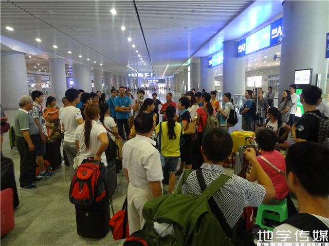 确保每一班火车的新生及家长都到出口后,工作人员便带领他们到集合点休息,由何杨老师对校车的接送情况做一个简单的介绍和安排。接着工作人员便带领着他们乘坐校车来公司报道。