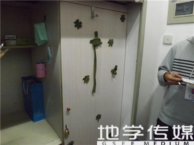 14号楼参赛的女生寝室装潢主题鲜明,每一个寝室的设计都别具一格。“轩辰阁”、“春屋”、“浪漫满屋”、“格物阁”“Home”等寝室名极具个性。一个寝室以“旅行的意义”为主题,她们在墙上、桌边贴着世界各地旅游景点的明信片,门后‘旅行小女孩’的绘画更令评委们眼前一亮,设计温馨而励志;还有一个寝室在墙上绘了美丽的水彩壁画,受到评委的广泛好评。另外,自制的“军训条带”绿色手提包,神奇的易拉罐太阳花,许多寝室将传单、废易拉罐等废弃物变成一个个点缀寝室,独具匠心的装饰,这种变废为宝的做法受到评委们的好评。