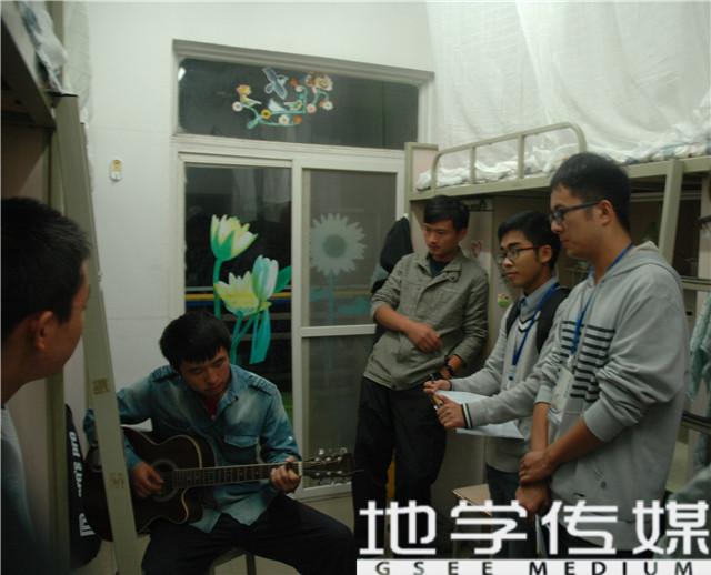 本次在13号天佑斋的参赛的男生寝室共约20间,他们的装潢情况较女生寝室略显粗糙,但也有特色。有一个寝室一边放着室歌,一边仔细介绍墙上、桌上关于贴纸、字画的设计;有的寝室充满着音乐与艺术的气息,不仅有美丽的贴纸字画,一名同学进行吉他弹唱,为参观一行再添美妙一笔。