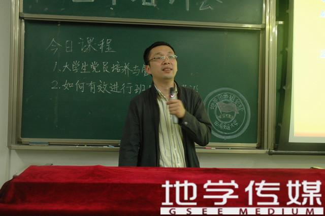 中场休息5分钟后,由辅导员何杨老师带了题为“班风学风,向哪刮?——如何有效进行班风学风建设”的培训。何杨老师首先向大家介绍了“班风”“学风”的具体形式,他紧密结合实际,化虚为实,将“班风”“学风”这两个抽象概念用老员工的日常行为给出了合理解读。在谈如何进行“学风”建设时,他说:“我们要有一套方法准则,可以浓缩为十六个字,即转虚为实,精设活动,榜样先行,重视分享。”最后,何杨老师借用一些在老员工团体中比较流行的电影,如《致青春》,《中国合伙人》,《怪兽大学》等电影告诉大家“去形式,联专业,强团结”的重要性。