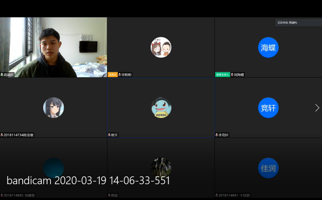 接下来的议程是同学描述自己对于疫情的看法和观点,以及在疫情中学到了什么,在这一过程中熊文同学,通过自己的亲身体验,结合当前世界疫情,与大家分享了自己对于疫情的看法,让同学们对当前形势有了更深的认识。