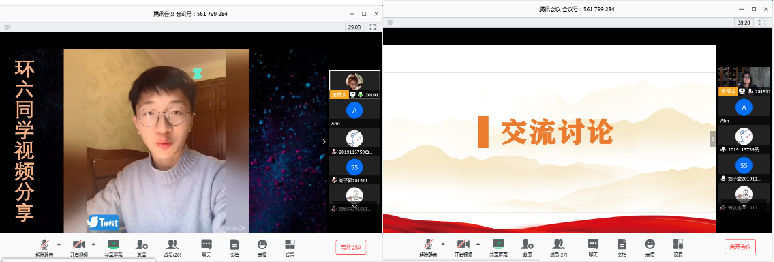 接下来是同学们的分享与讨论环节,负责人首先播放了同学们事先自发录制剪辑好的疫情中的感想与感悟视频。同学们有分享在疫情中所被感动到的感人事迹,有分享自己在疫情中的学习生活,也有分享自己在疫情中的自我思想调节和生活调节,线上的同学们从视频中见到几个月没有看到的同学十分激动,积极的在评论中讨论了起来。视频播放完后,进入同学们的交流讨论环节,同学们在线上连麦开视频互动,讨论关于网课的学习、生活作息的调整、怎样在疫情中为国家做贡献这几个比较热门的话题,最后会议在同学们热情的讨论声中结束。本次团日活动让同学们更深入的了解了当前的疫情形势,并在学习和实践中增进了对党和国家制度优越性的认识和热爱,同时也增强了团支部内部凝聚力,促进了班级文化的建设。至此,2019级环境第六团支部团日活动圆满结束。
