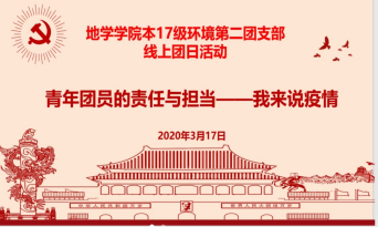 3月17日,bevictor伟德官网bevictor伟德官网环境2017级第二团支部以“战疫中最美的青春——团员青年的责任与担当”为主题的团日活动在线上举行。