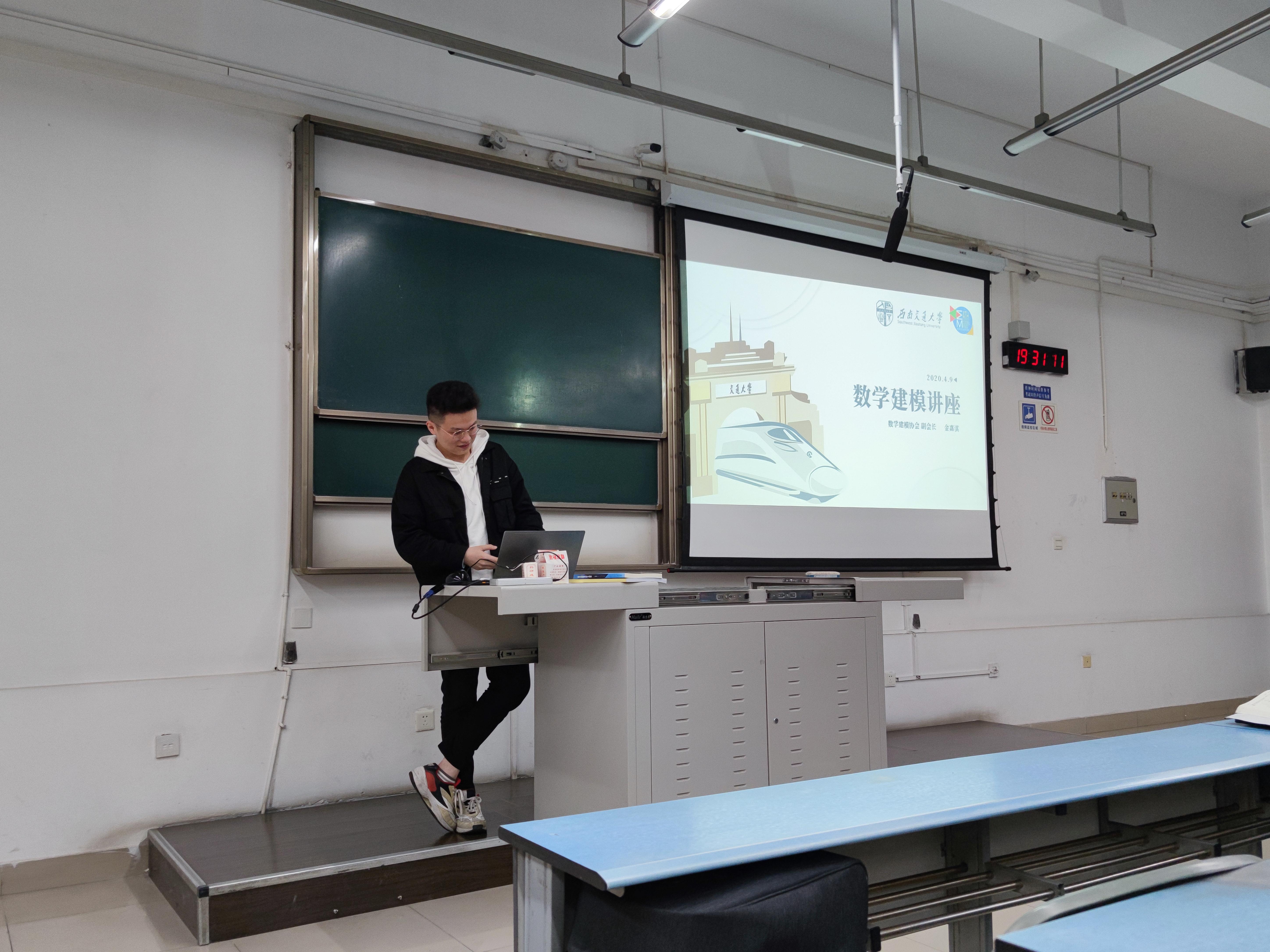 交流会开始,主讲人三个方面对数学建模进行了概述,首先介绍了各类数学建模竞赛,有校内举办的新生杯数学建模竞赛,让一开始接触数学建模的同学对建模比赛有了大致的了解;省级的数学建模比赛会与省内各高校的同学角逐出进入国赛的同学从而吸取经验,在国家级的数学建模比赛中,与全国的参赛选手赛出最终的奖项,接着介绍了各类数学建模竞赛的价值,参加数学建模比赛既能提升自己的数学能力,还能通过比赛熟悉各类软件,如果获奖,既能加分,让自己在保研和奖学金的评选中提升竞争力,还能在自己的履历上添上浓墨重彩的一笔。紧接着主讲人介绍了参赛队伍的组建和分工,让同学们更清楚的了解了比赛。参赛队伍一共由三个部分组成,分别为建模手,写手和算手。建模手分析题意建立相应的模型,算手通过建模 手的模型来拟写算法,写手将模型和算法整合,写成一篇完整的参赛论文。