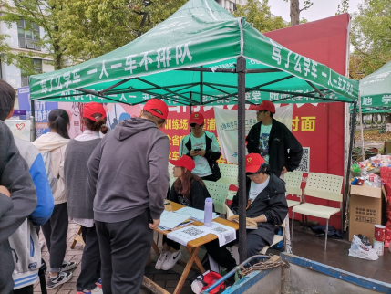 4月17日早晨8:00,志愿者兵分两队,一队前往花市运送提前订好的鲜花,另外一队到达二食堂前布置摊位。上午10:00左右,鲜花就位,活动正式开始。本届废品换鲜花活动与往届一样,志愿者分班分组,每组值班三小时,主要负责为前来参加活动的同学进行活动规则的讲解、废品的称重、前往宿舍搬运废品以及对场地的整理。