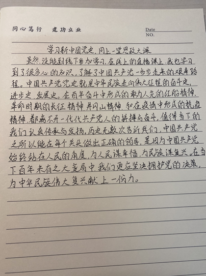 因此,本次党史的学习并非启蒙,给予他们更多的,是他们对原先个人理想的肯定,对自身信念更加肯定的一种动力。
