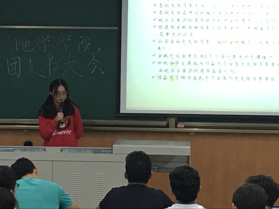 2018年9月20日晚上,地院团建部召开本学期第一次团支书大会。团建部全体成员及大一、大二、大三各班团支书参加会议。会议由团建部部长韩奕菲主持。