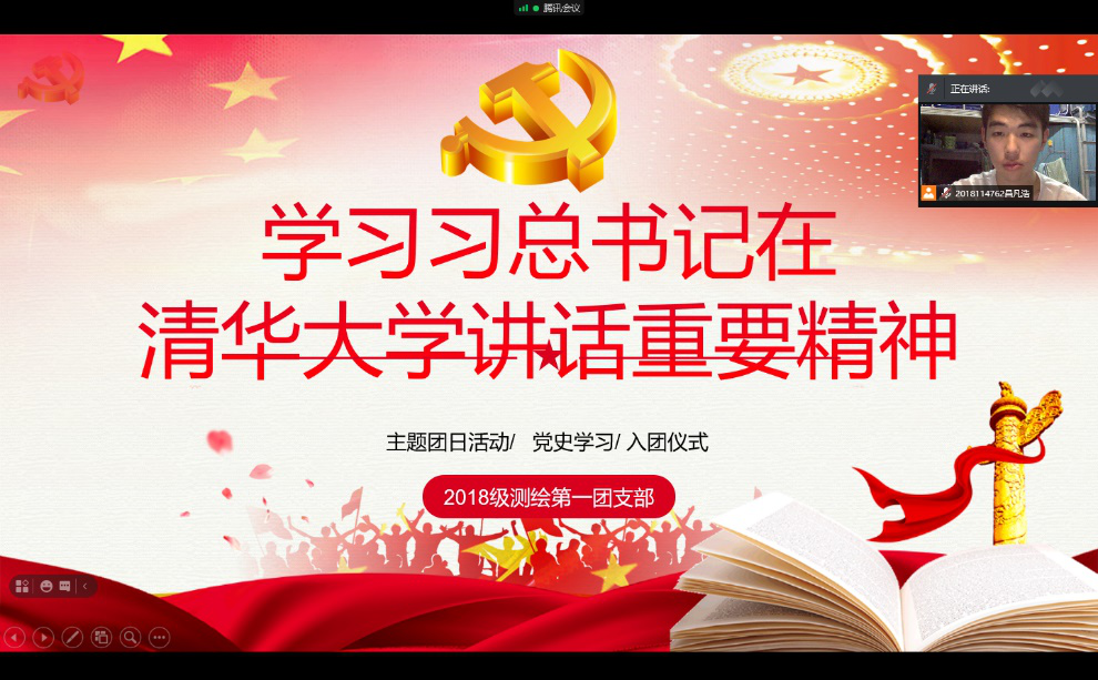 中共中央总书记、国家主席、中央军委主席习近平19日考察清华大学时发表了重要讲话。讲话指出,党和国家事业发展对高等教育的需要,对科学知识和优秀人才的需要,比以往任何时候都更为迫切。为了对讲话的精神进行学习,2021年5月6日下午2018级测绘第一团支部召开了一次线上主题团日活动。