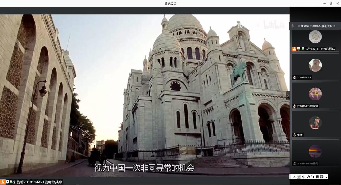 接着全体团员集体观看了电影《我的1919》片段,影片讲述了中国外交才子顾维钧作为中国代表团一员参加巴黎和会的经历。影片表现在1919年"巴黎和会"上,中国代表拒绝在丧权辱国的"和约"上签字的历史。