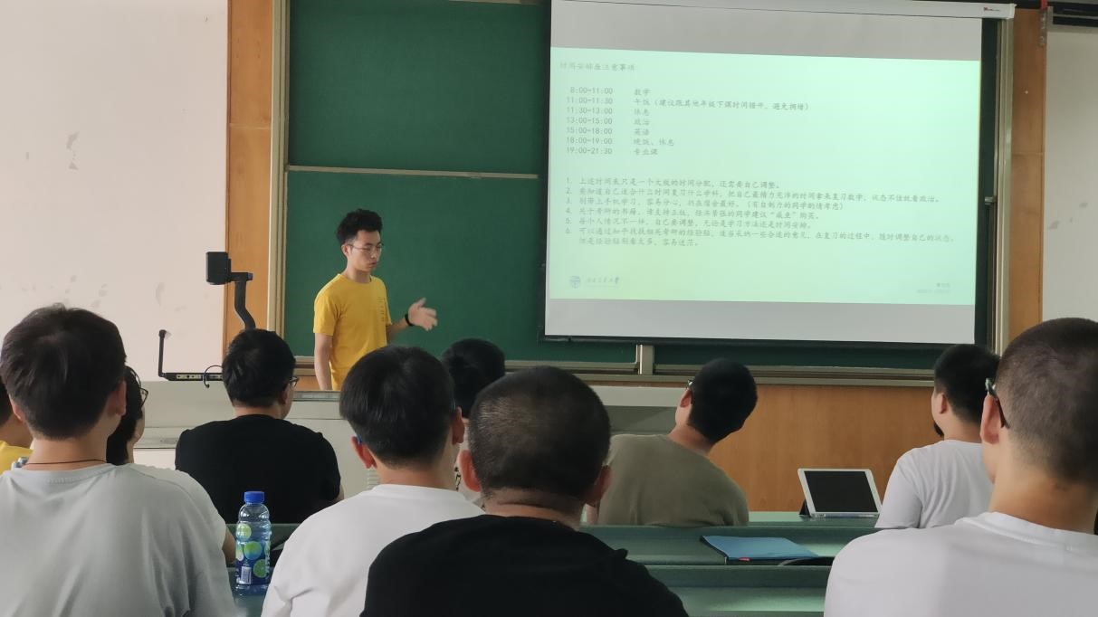 其次,由尤安俊学长进行考研准备和考研学习经验的交流,指出不能盲目考研,第一步一定要搜集资料,做好调查,确定方向。同时在交流过程中他提到,考研备考会占据大量的时间,要做好心理准备的同时,规划好时间安排,合理分配任务。