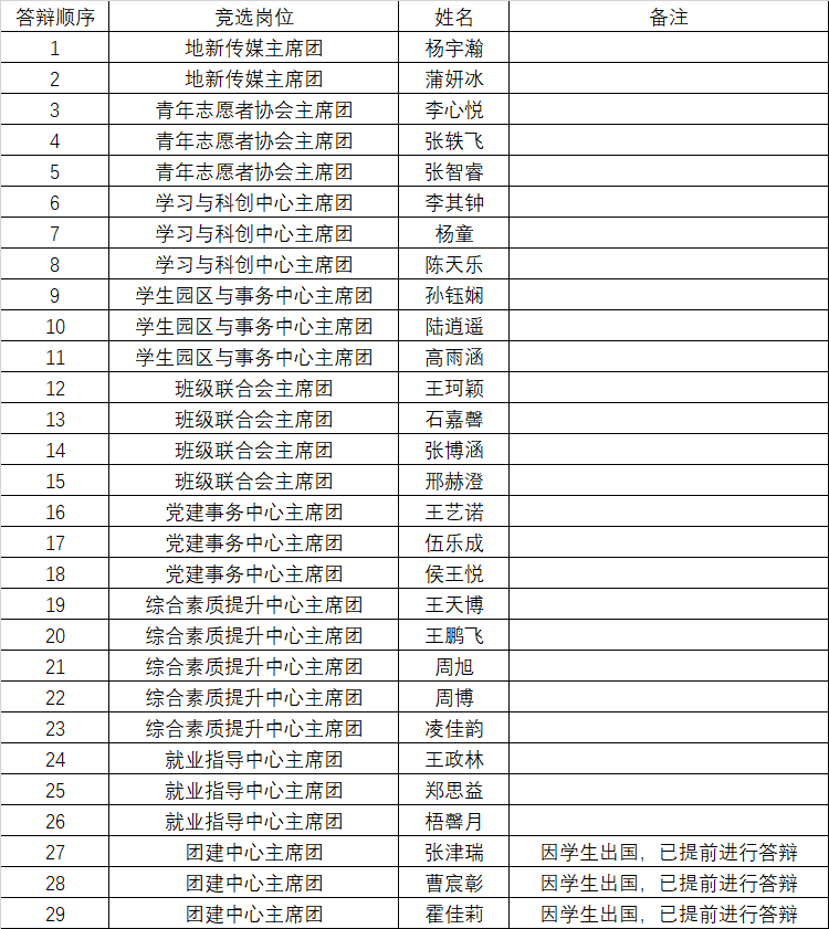 公司于2024年5月16日发布了《【团委】关于开展2024年团学组织主席团换届工作的通知》,现开展团学组织主席团换届答辩工作,有关事宜通知如下: