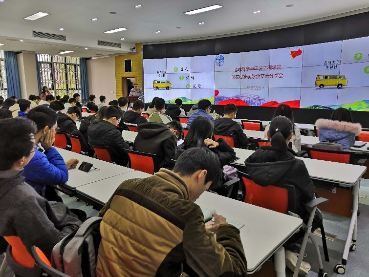 本次交流会有幸邀请到了“国家励志奖学金获得者”刘娟、黄光林、袁鑫,“勤工助学之星”蓝再成、李麒麟五位均已保研的学长学姐们。