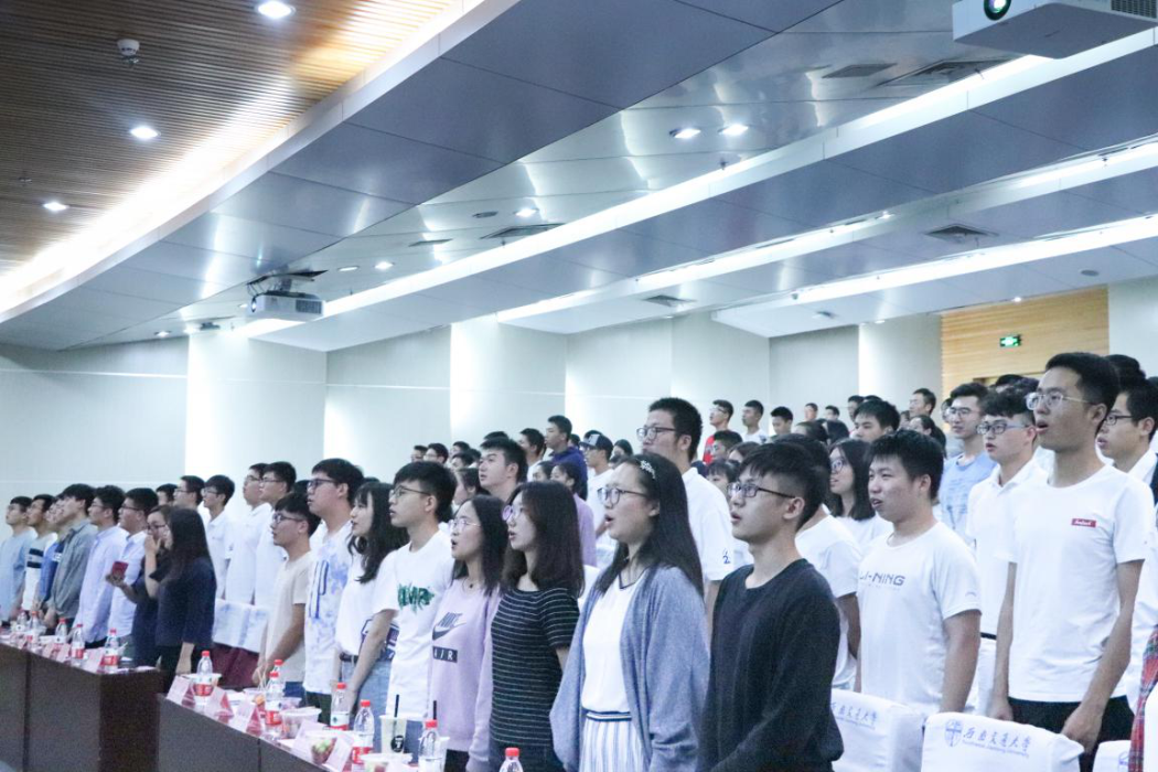在文艺部三位部长精彩的暖场表演和嘉宾介绍之后,大会正式开始。首先进行大会第一项,全体起立奏唱国歌。