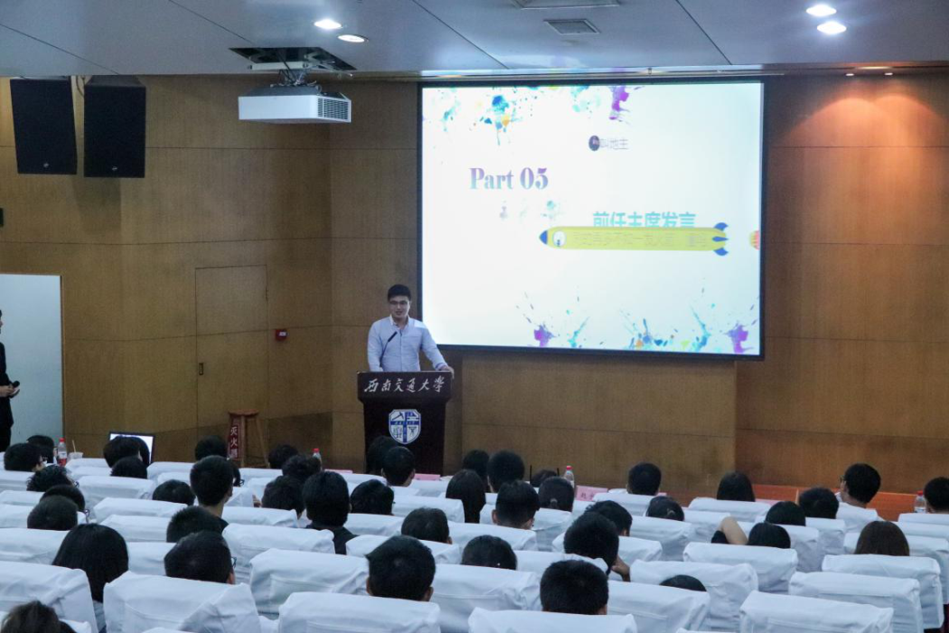 奏唱国歌过后,便是嘉宾发言环节。员工会指导老师-李国欣老师、前任员工会主席-郝建龙主席、现任员工会主席-高颖主席分别上台,并表示自己对这届员工会全体成员充满了信心,希望员工会的每一位成员不仅能在员工会里面学到能力,还能处理好工作与学习之间的关系,不要让自己留下遗憾。李国欣老师提到了在大学要始终保持“三心”:用心、热心、崭新。我们要用心地完成自己手边的每一件事,在待人处事时要时刻保持热心,永远要以一个崭新的面貌面对未来。