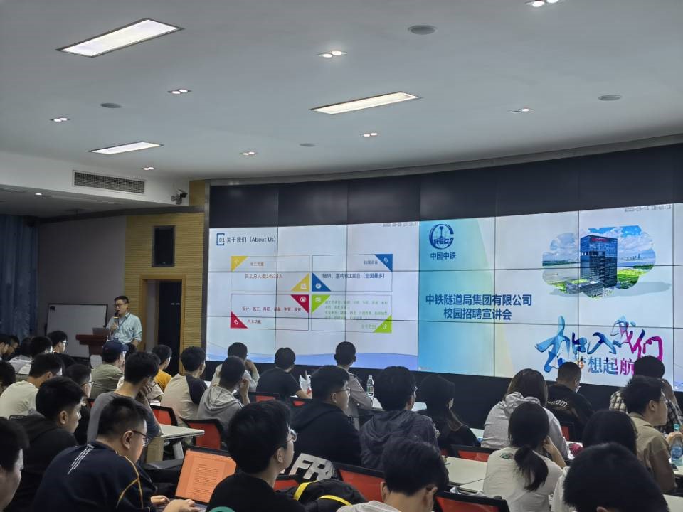 而后,负责人为同学们介绍了中铁隧道局的薪资福利,人才培养计划与工作环境的大致情况。会后,同学们就招聘要求及企业期望纷纷提问。