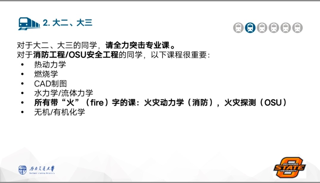 对于消防工程/osu安全工程的同学,请学好以下课程:热动力学,燃烧学,CAD制图,水力学/流体力学,所有带“火”的课,无机/有机化学。