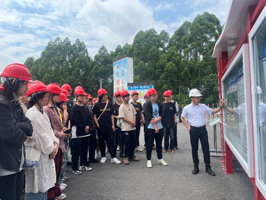 全体师生在工作人员的带领下,正确佩戴安全帽后有序进入项目部,首先中铁十一局总工程师给大家介绍了成渝中线铁路项目的基础情况。