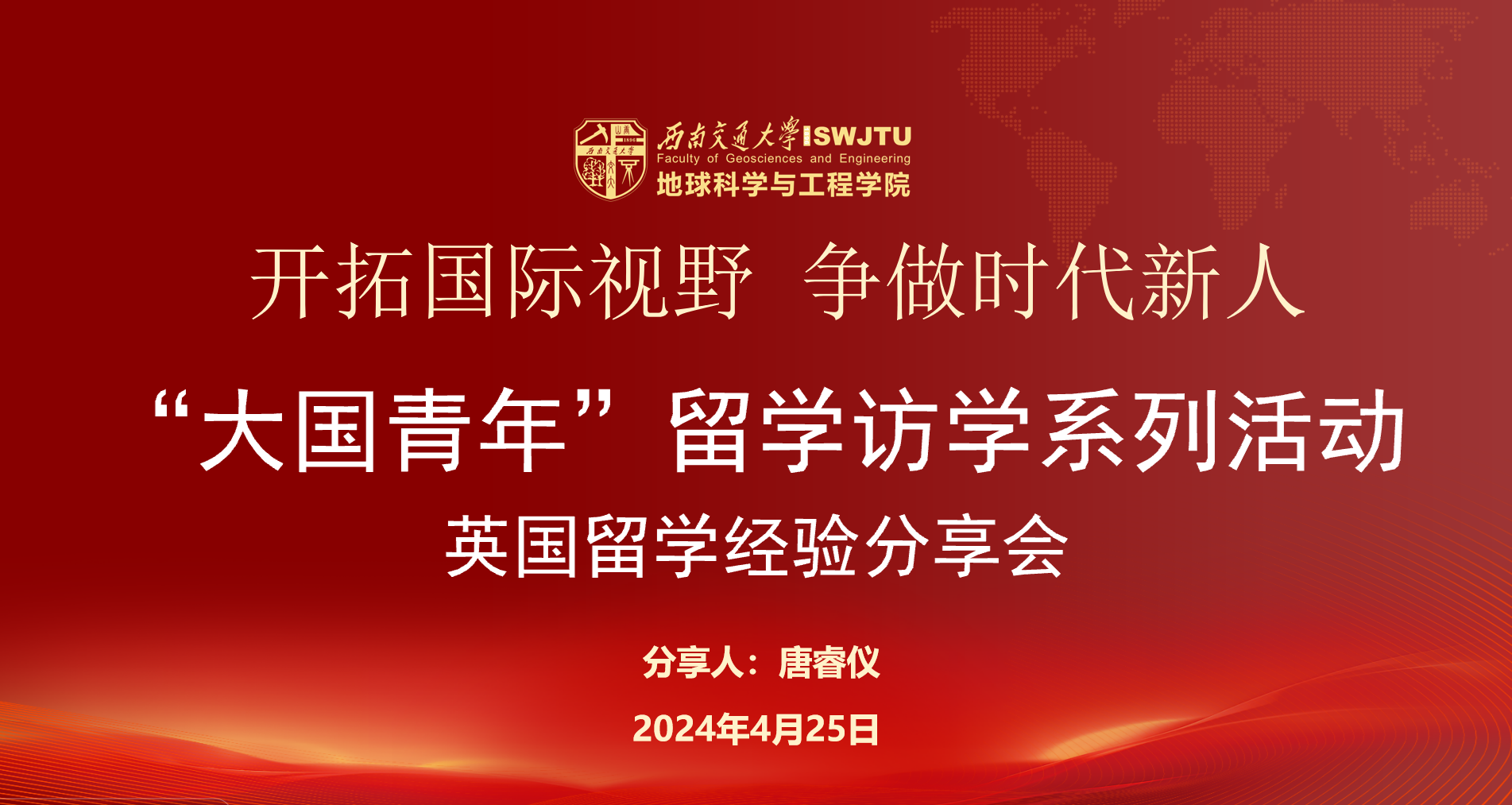 2025 年4月25日晚,“大国青年”留学系列——英国访学与留学经验分享会在X4155教室举行。安全工程(中外)专业2019 级员工唐睿仪受邀为大家分享自己在英国进行访学留学的经历。