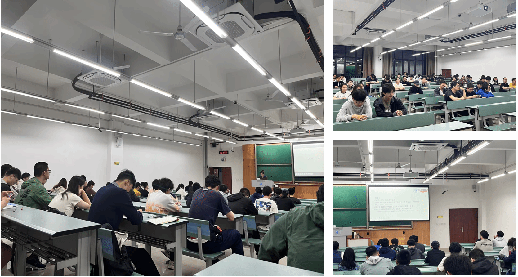在会上,唐睿仪学长就同学们感兴趣的方向,向同学们介绍了英国留学的各个注意事项,分享留学学习方法,科研规划;分享还涵盖了职工活的方方面面,从日常出行、住宿选择、饮食文化,到医疗体系、安全须知、通讯方式以及休闲娱乐等,都提供了细致且可操作性强的指导。此外,唐睿仪学长还分享了不同高校研究生申请的流程和小技巧,同学们也深有触动,在随后的交流环节中积极提问,现场气氛热烈而融洽。