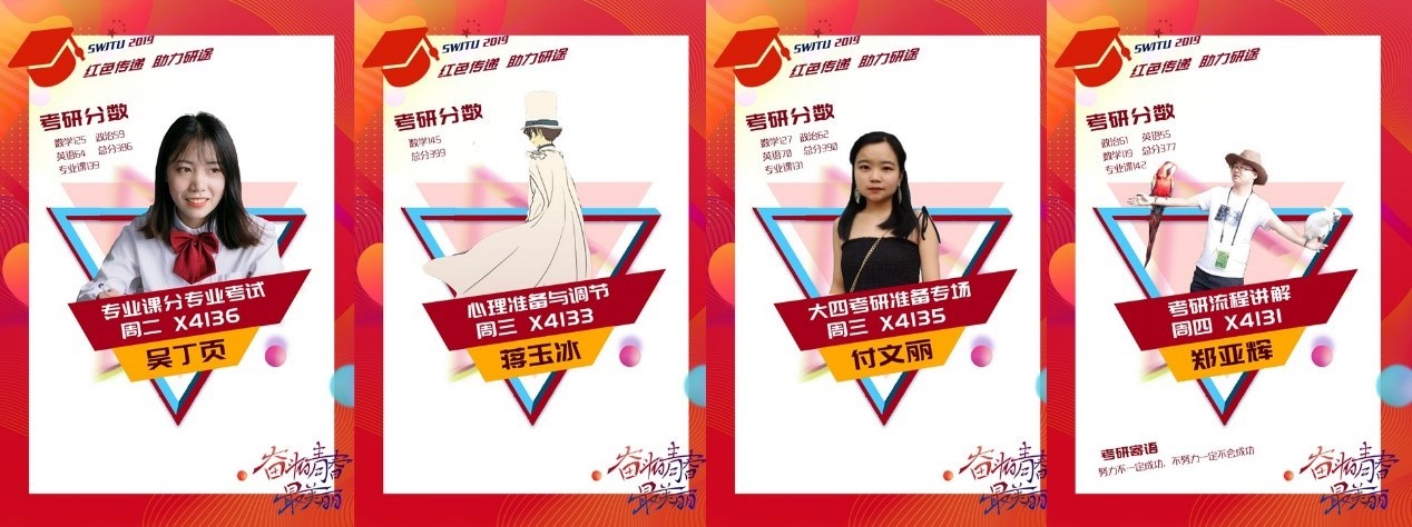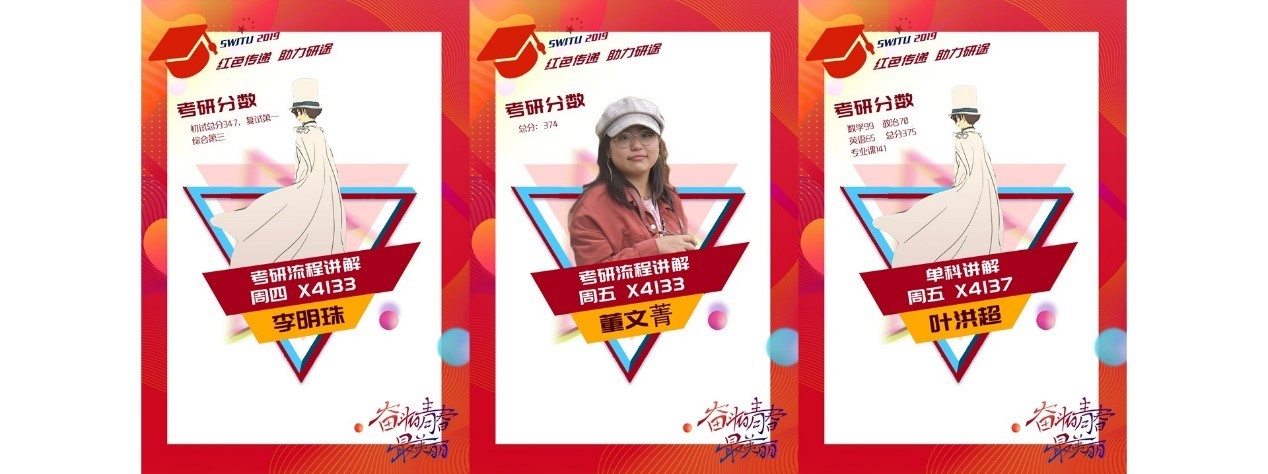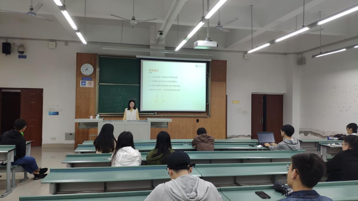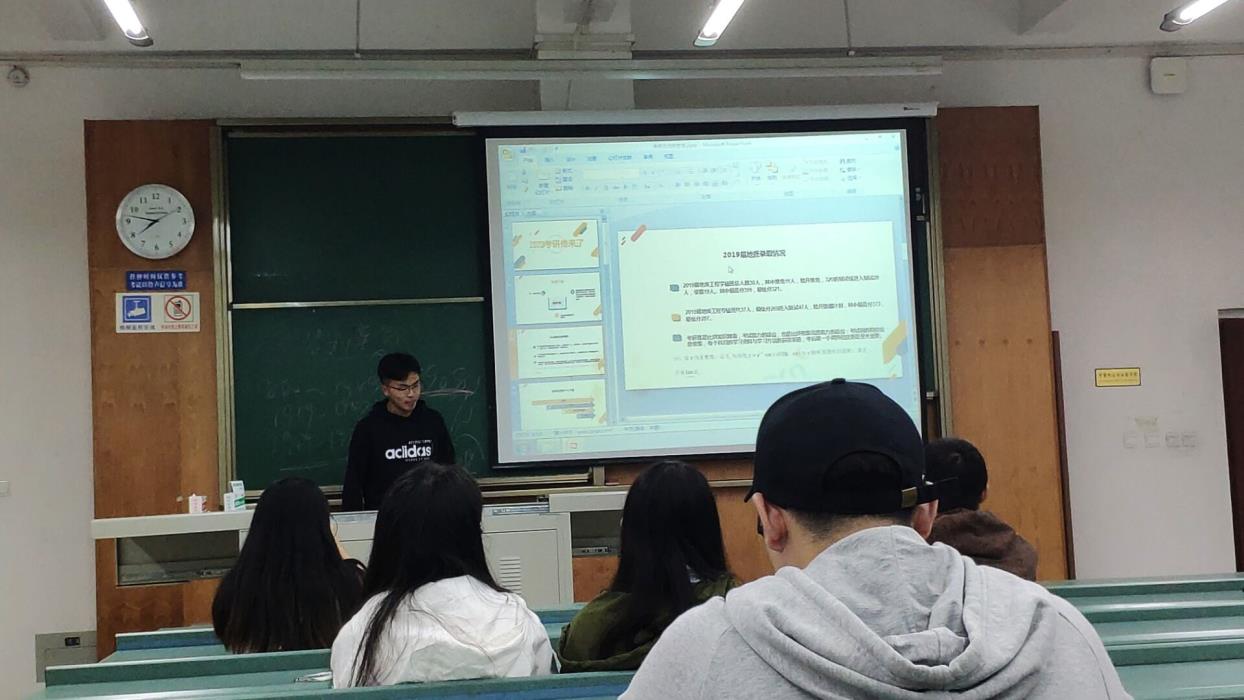 第一场于10月21日晚19:30在X4158教室举行。首先是来自环境工程专业的唐亚鑫学姐为大家带来数学单科讲解,学姐讲解时将数学分为四个阶段:基础阶段重在熟读教材,理解概念以及公式的推导过程,强化阶段注重思维能力与计算能力的培养,冲刺阶段需要掌握解题技巧,做到对知识点烂熟于心,模拟阶段则是对以往真题进行的相关模拟,形成自己的解题节奏。学姐特别强调的是,数学这个学科,付出是与收获成正比的,命运是把握在自己手中的。其次是来自地质工程专业的陈梦发学长为我们带来英语单科讲解,考研英语分为四个方面:单词、阅读、长难句翻译和作文。单词是备战最早的方面,需要做到持之以恒,是后三者的基础。阅读强调技巧的灵活运用,不同题型有着不同的解决技巧。作文及句子翻译不是空穴来风,需要背诵模板,再加以分析。学长为我们推荐了何凯文每日一句公众号,考研英语的备战需要每日的坚持。
