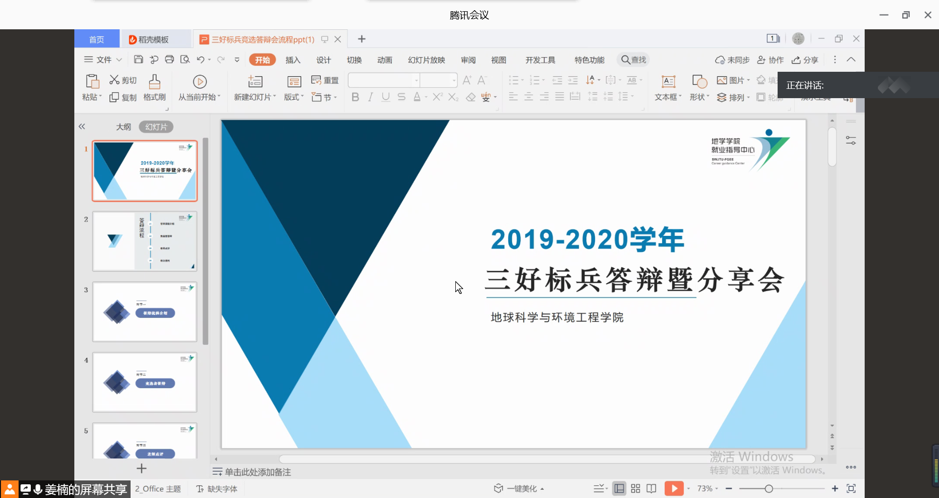 2020年10月9日13时,bevictor伟德官网就业指导中心成功举办“2018级环境、安全工程专业2019-2020学年三好标兵答辩暨分享会”。本次活动由环境工程专业的姜楠同学主持,bevictor伟德官网2018级辅导员、就业指导中心指导老师杨都强老师出席指导,活动通过腾讯会议线上开展,活动吸引到71名各年级观众听会学习。