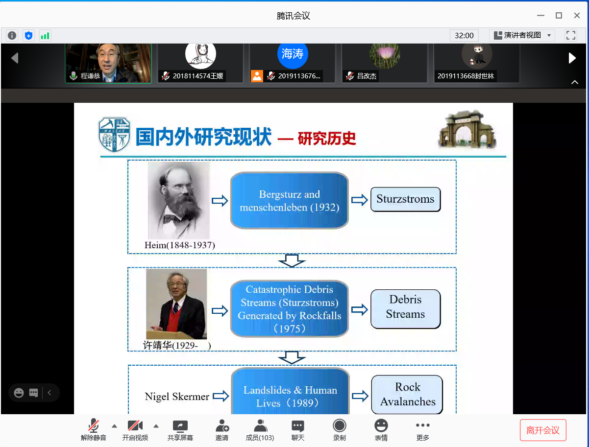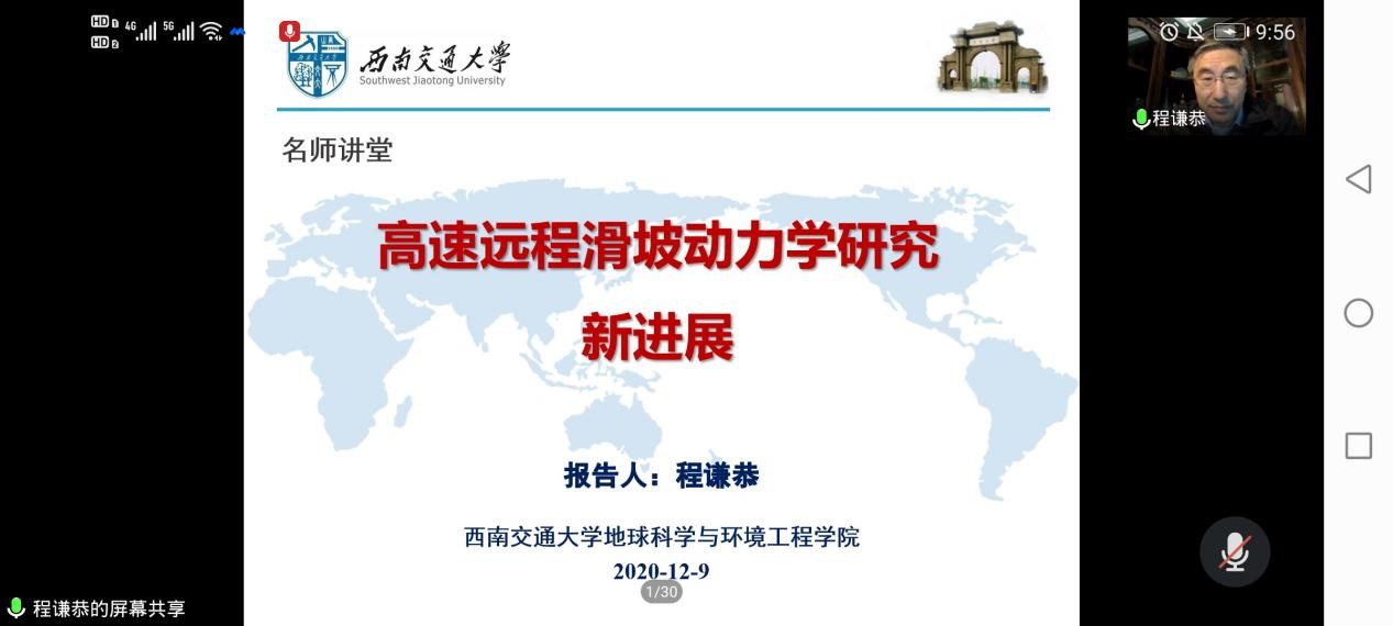 2020年12月9日周三上午9:50-11:30,bevictor伟德官网就业指导中心通过腾讯会议举办第四期“名师讲堂”讲座,旨在深化员工对专业了解,提高员工学习科研能力,强化师生经验交流,搭建国内外学习经验交流桥粱,营造国际学习氛围,进一步提高公司就业指导工作实效。本次讲座由程谦恭教授主讲,主题是高速远程滑坡动力学新进展,讲座吸引到bevictor伟德官网各年级本科生和研究生105人参加。