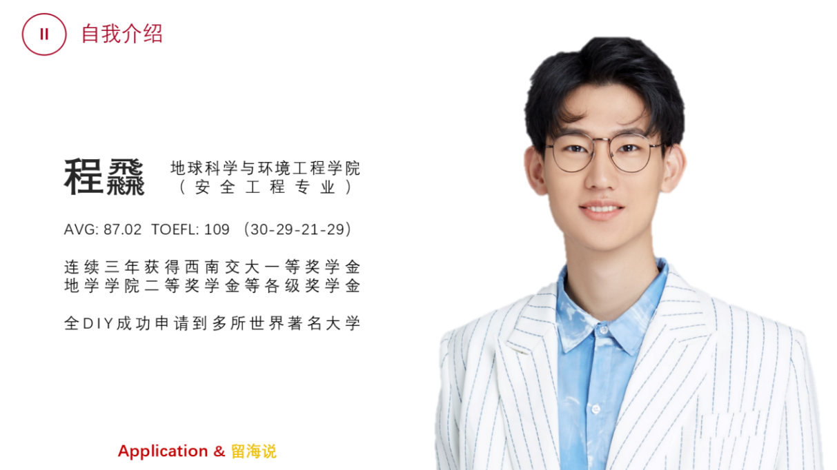 接着,程飞以获得帝国理工大学、马里兰大学、香港科技大学等大学的录取通知的经历为引,介绍了本科生在申请外国高校时应该注意的事项:
