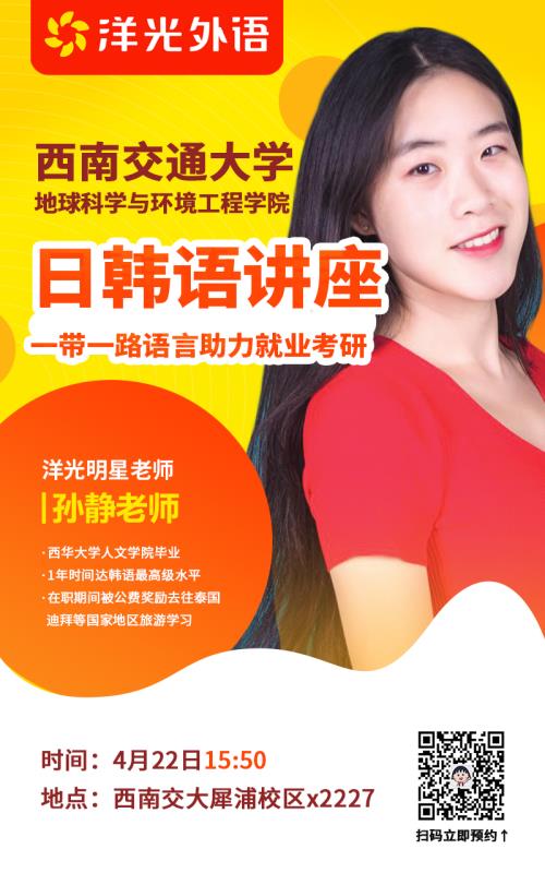 主讲人简介:大一开始利用课余时间学习韩语,一年时间达到韩语专业专业生需要花到4年时间才能到达的全球韩语能力水平高级,从大三就开始负担起自己的学费和生活费,毕业1年成为洋光最年轻的中心董事长,毕业后被母校多次邀请回去演讲分享她的大学经验