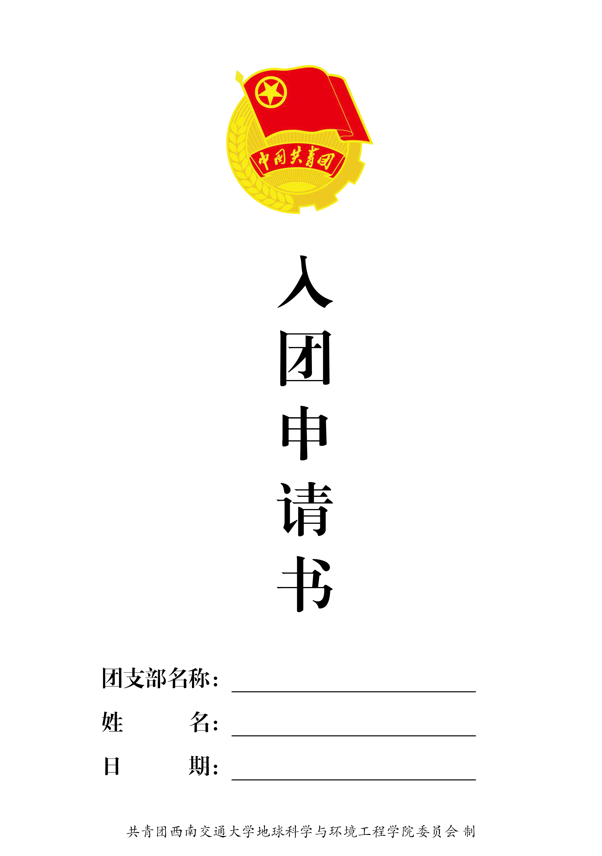 为规范公司入团流程,标准化公司新团员团员材料,请有入团想法的同学按此封面格式完成自己的入团申请书。