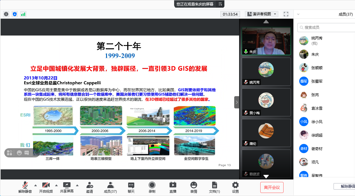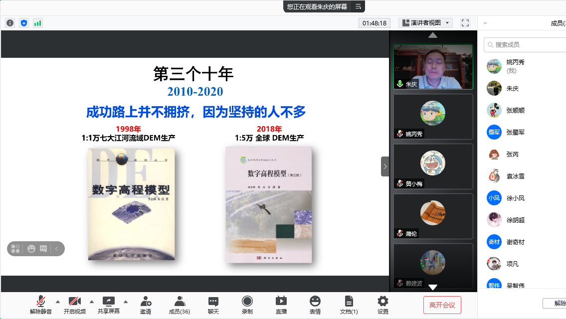 随后,朱庆同志讲述了自己立足于中国城镇化发展背景,另辟蹊径的第二个科研十年。朱庆老师曾参加四川省应急测绘与防灾减灾工程技术研究中心授牌仪式,从中体会到学问不分国界,合作交流对于科学研究有举足轻重的作用。朱庆老师作为一名中共党员和教授,自觉地担负起了科研带头人的责任,是我们学习的榜样。