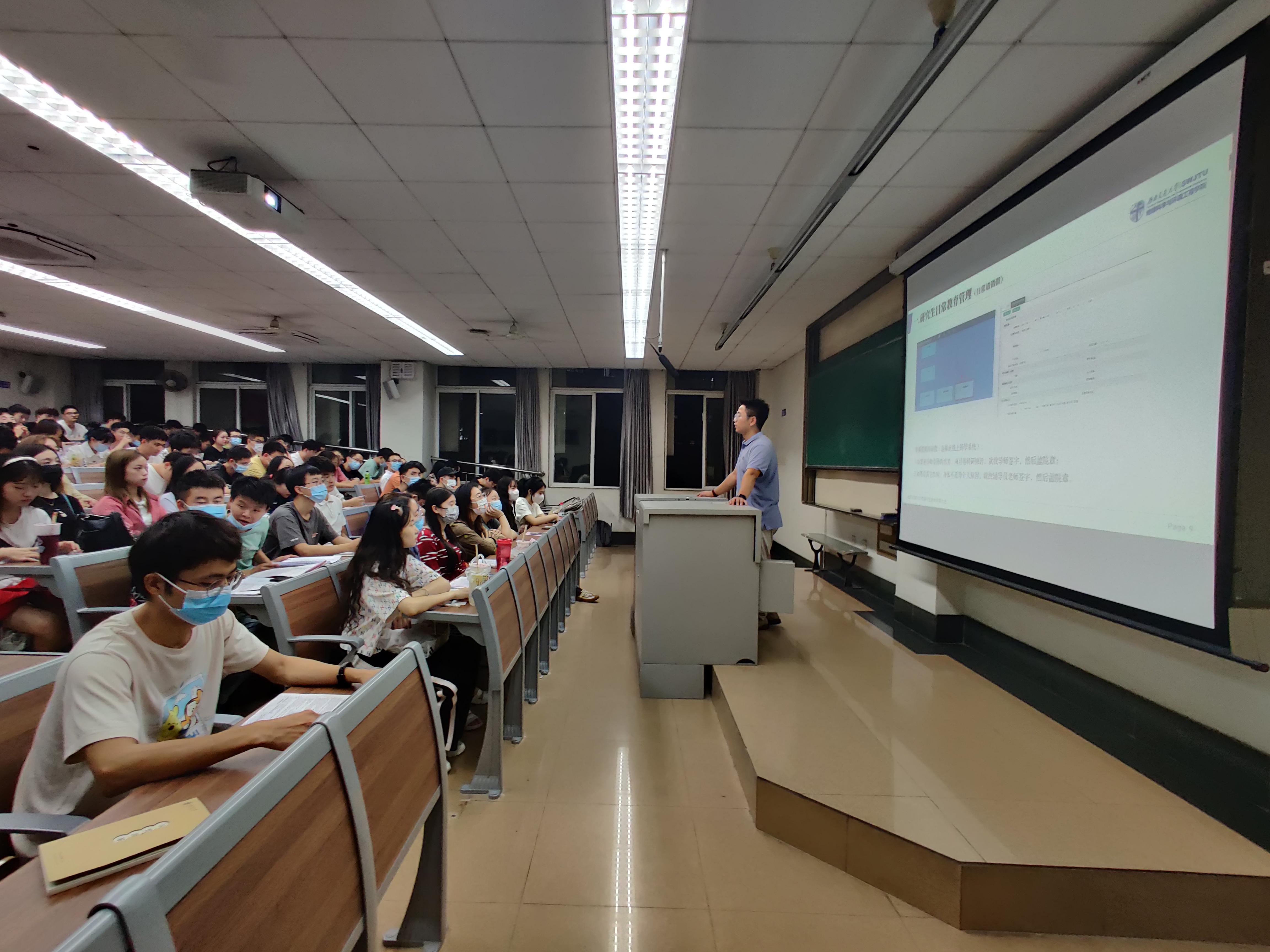 首先,针对研究生日常教育管理,两位老师重点讲解了研究生常用的两大系统—研究生院系统和扬华系统,同时为每位同学介绍了与研究生生活学习息息相关的校内网站,两位老师强调研究生应及时查看公司与公司发布的各项通知,要学会用交大官网链接校内其它网站,主动掌握信息、利用信息。
