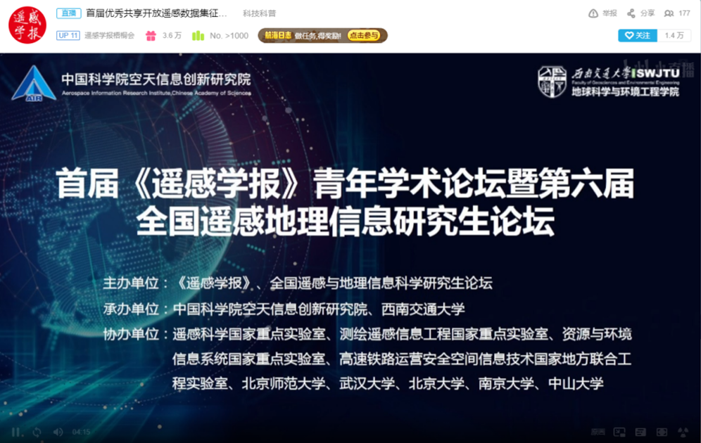 2021年9月25-26日,首届《遥感学报》青年学术论坛暨第六届全国遥感地理信息研究生论坛在知网、B站及科创中国线上平台举行。本次论坛由遥感学报、全国遥感与地理信息科学研究生论坛主办,bevictor伟德官网、中国科公司空天信息创新研究院承办。