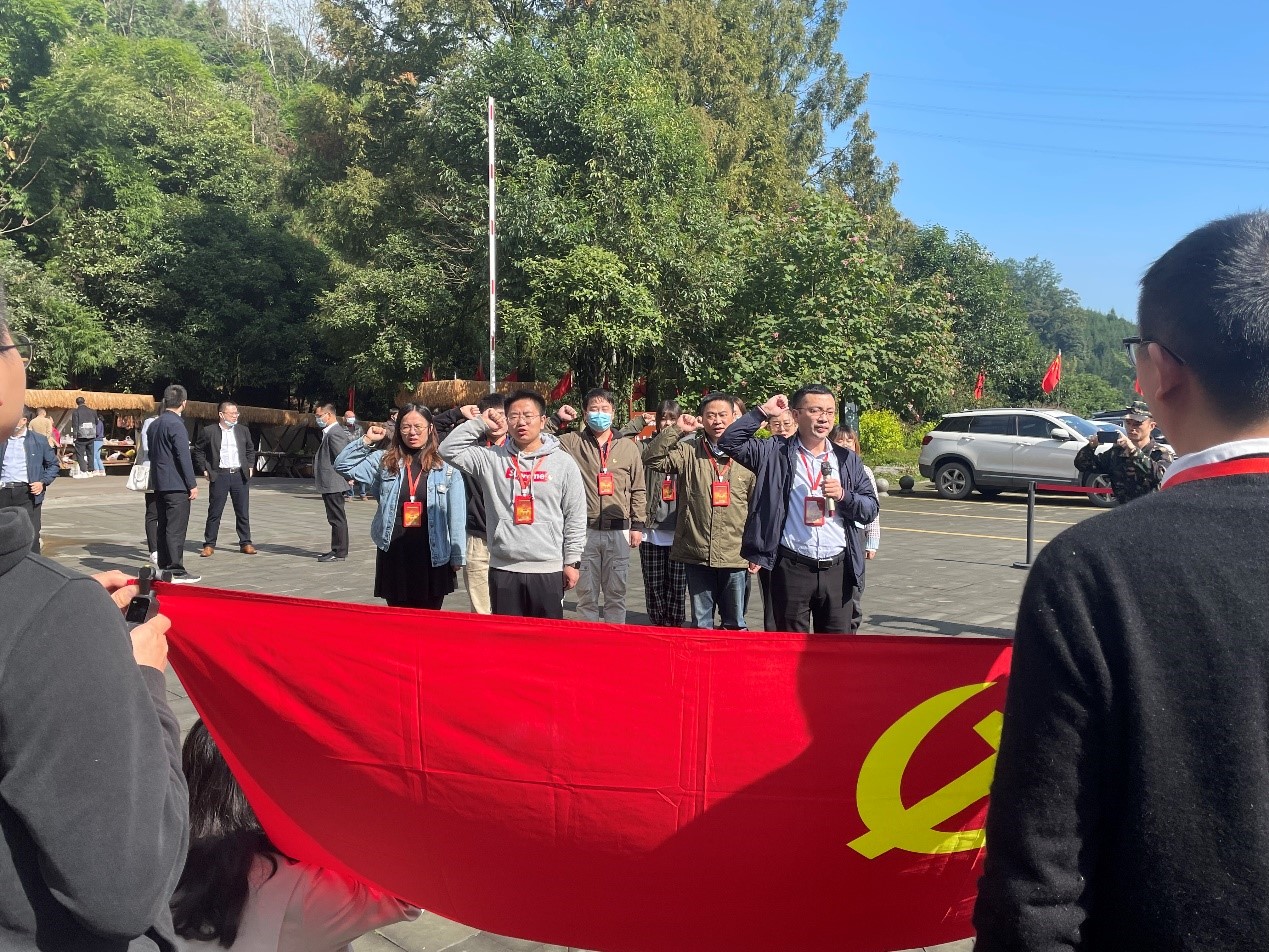为深入学习贯彻习近平总书记在庆祝中国共产党成立100周年大会重要讲话精神,推进党史学习教育走深走实,进一步挖掘红色资源,增强党史学习教育的吸引力和感染力。10月29日,公司党委书记关秦川、党委副书记傅尤刚、党务秘书李晓宇、团委书记杨都强以及全体学工组辅导员前往邛崃红军长征纪念馆接受红色教育,进行党性锻炼。