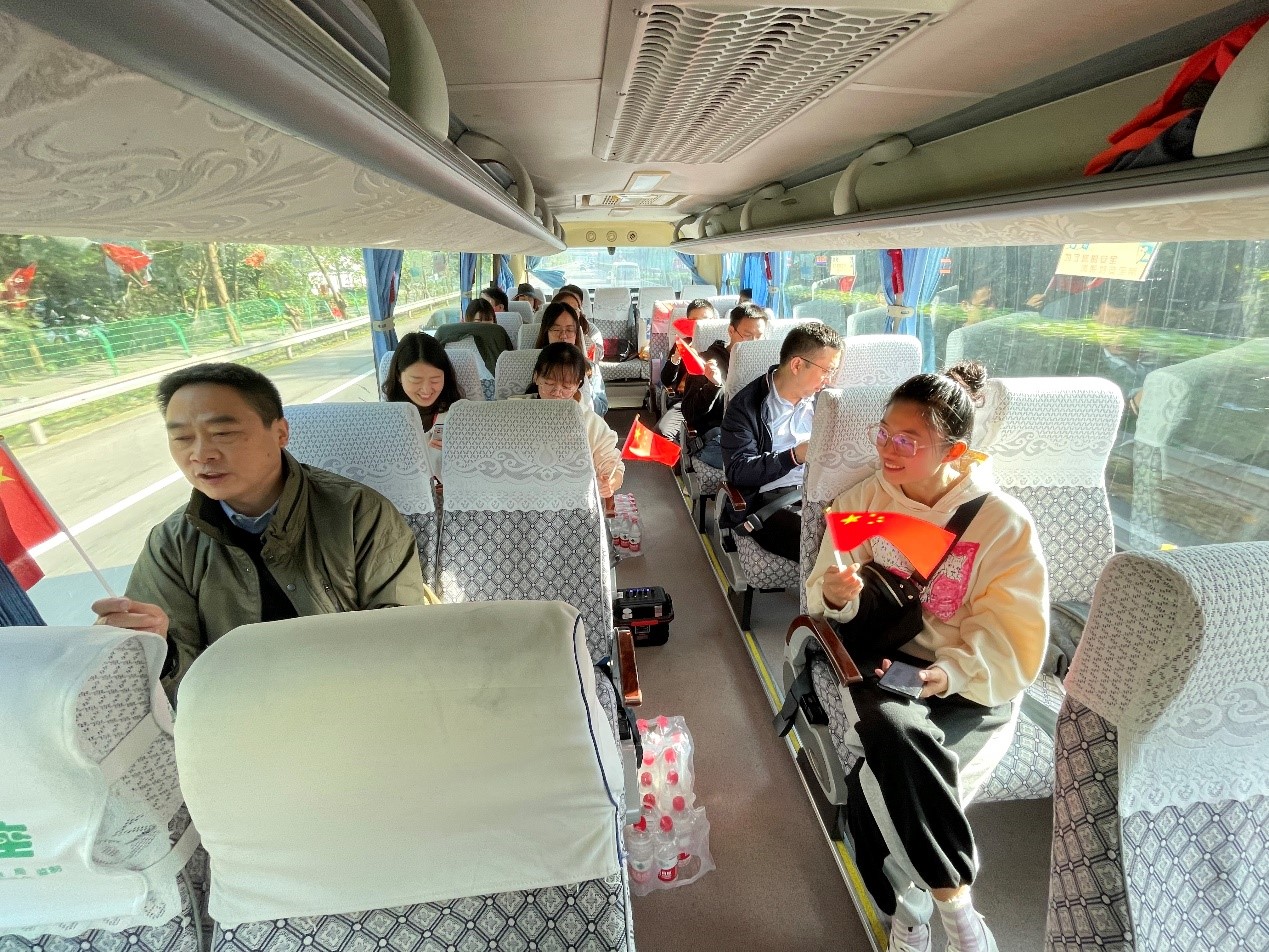 在前往邛崃的路途中,为提高大家的党史学习热情,由公司党委书记关秦川带领全体成员共同吟唱《唱支山歌给党听》《歌唱祖国》《我和我的祖国》等红色歌曲,伴随着嘹亮的歌声,大家向着纪念馆一路进发。