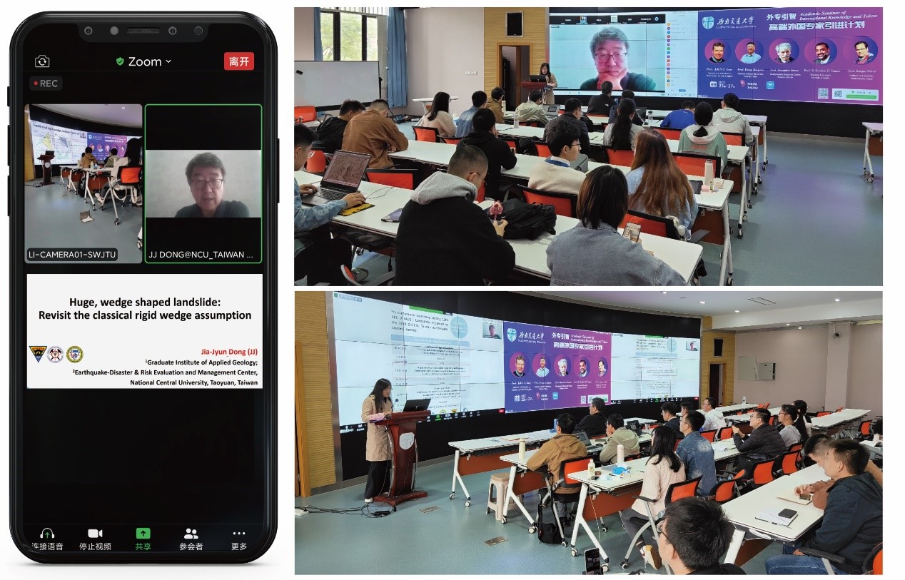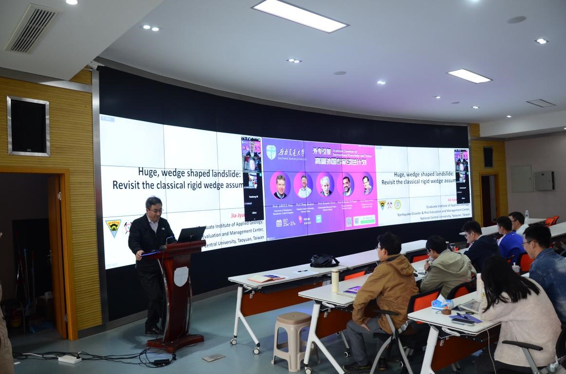 10月26日上午,台湾中央大学地球科学公司副经理、特聘教授董家鈞(Jia-Jyun Dong)受邀发表题为《Huge, wedge shaped landslides: Revisit the classical rigid wedge assumption》与《Orientation uncertainty of weak planes and rock slope failure probability》的两场学术报告。