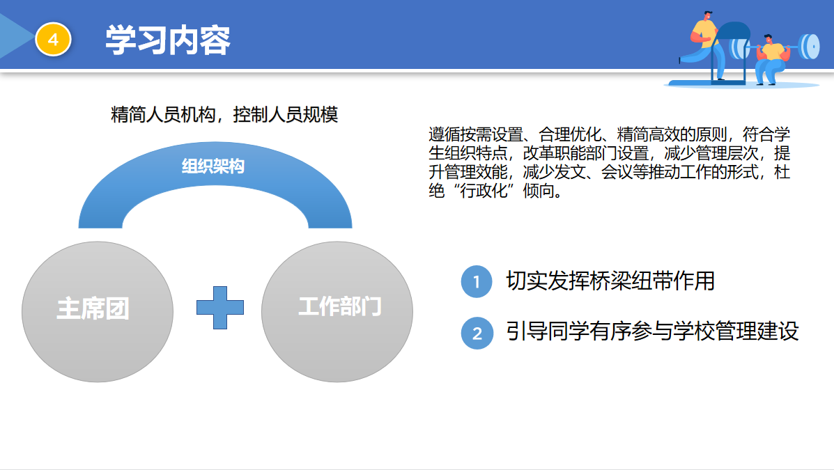 本次学习开篇着重讲述,在日常员工会及员工组织所开展的员工工作,应该以全面贯彻党的十八大和十八届三中、四中、五中、六中全会精神,认真贯彻习近平总书记系列重要讲话精神,保持和增强政治性、先进性、群众性为指导思想;以坚持正确政治方向、坚持员工主体地位、坚持依法依章程开展工作、坚持问题导向深化改革为基本原则,紧跟时代要求,聚焦思想政治引领,践行服务宗旨,服务同学全面发展,从严治会,纵深推进改革落实。