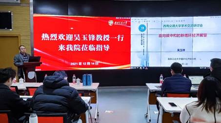2021年12月14日上午,应“固废资源化”重点专项“城市固废大数据挖掘及全生命周期管控新技术”项目负责人赵锐教授邀请,国家循环经济专家咨询委员会专家委员、国家重点研发计划“固废资源化”重点专项总体专家组成员、北京工业大学循环经济研究院经理吴玉锋教授到公司开展项目跟踪指导,并做了“面向碳中和的新循环经济科技展望”学术讲座。bevictor伟德官网科学技术发展研究院邓永权副经理,张超科长,项目骨干慎利副教授、彭道平副教授、罗刚副教授、陈德副教授、杨丹博士、俞阳博士,以及项目组30余人参加了本次交流活动。