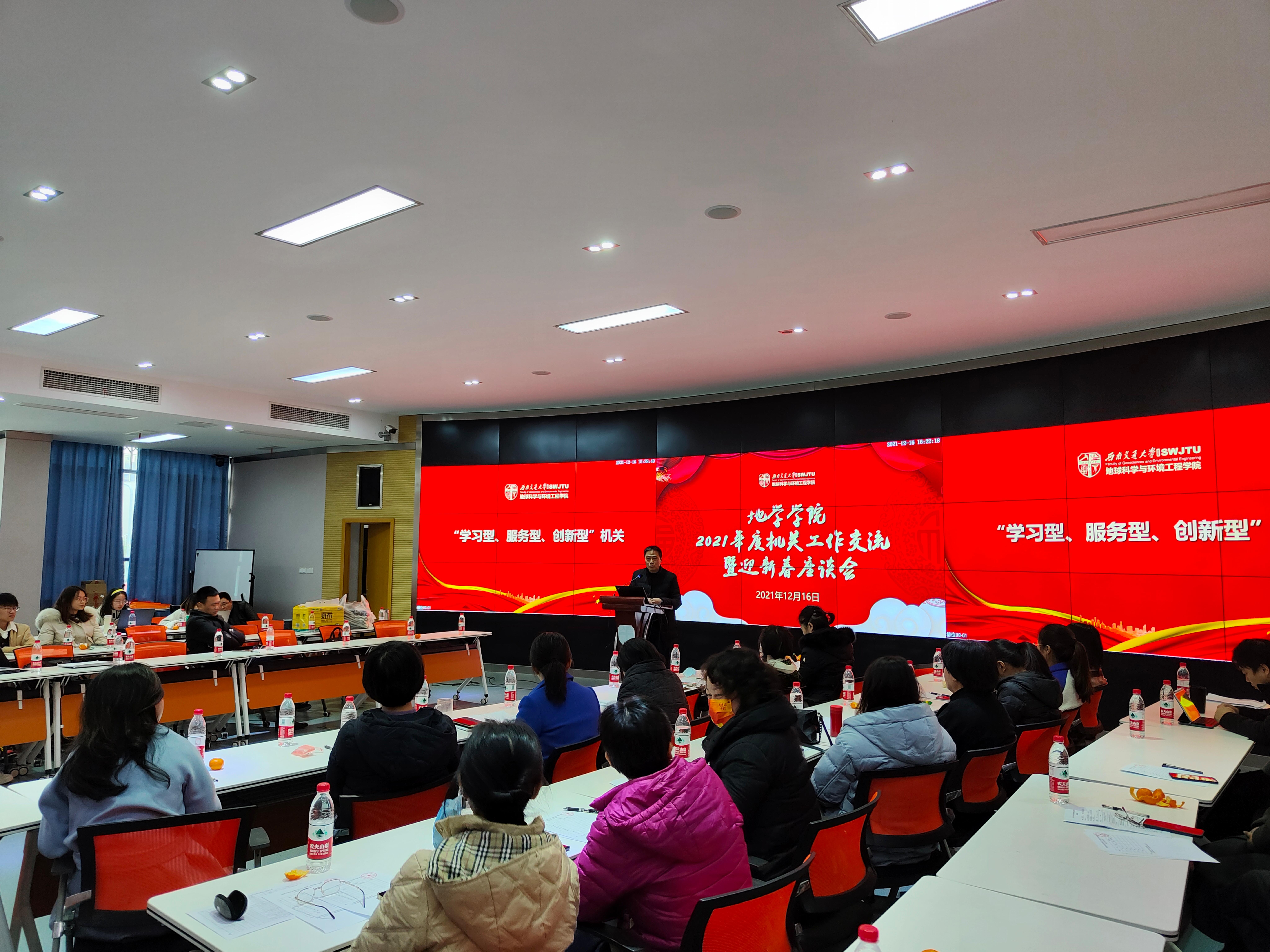 张溪浅谈了自己这一年里的工作感悟,并从正确理解服务的内涵、爱岗敬业、注意形象、尊重为本、行事规范、善于表达等方面,阐述了做好管理服务工作的基本要求;蔡红波从有态度、有温度、有热度、有风度四个方面阐述自己在机关工作的感受;叶娜结合教务工作,表达了自己这一年来的获得感和成就感。之后,谢华、郑容、干敏等老师也结合自己的工作逐一进行分享交流。大家在轻松愉悦而不失严肃的氛围中一起回顾2021年,共同展望2022年。