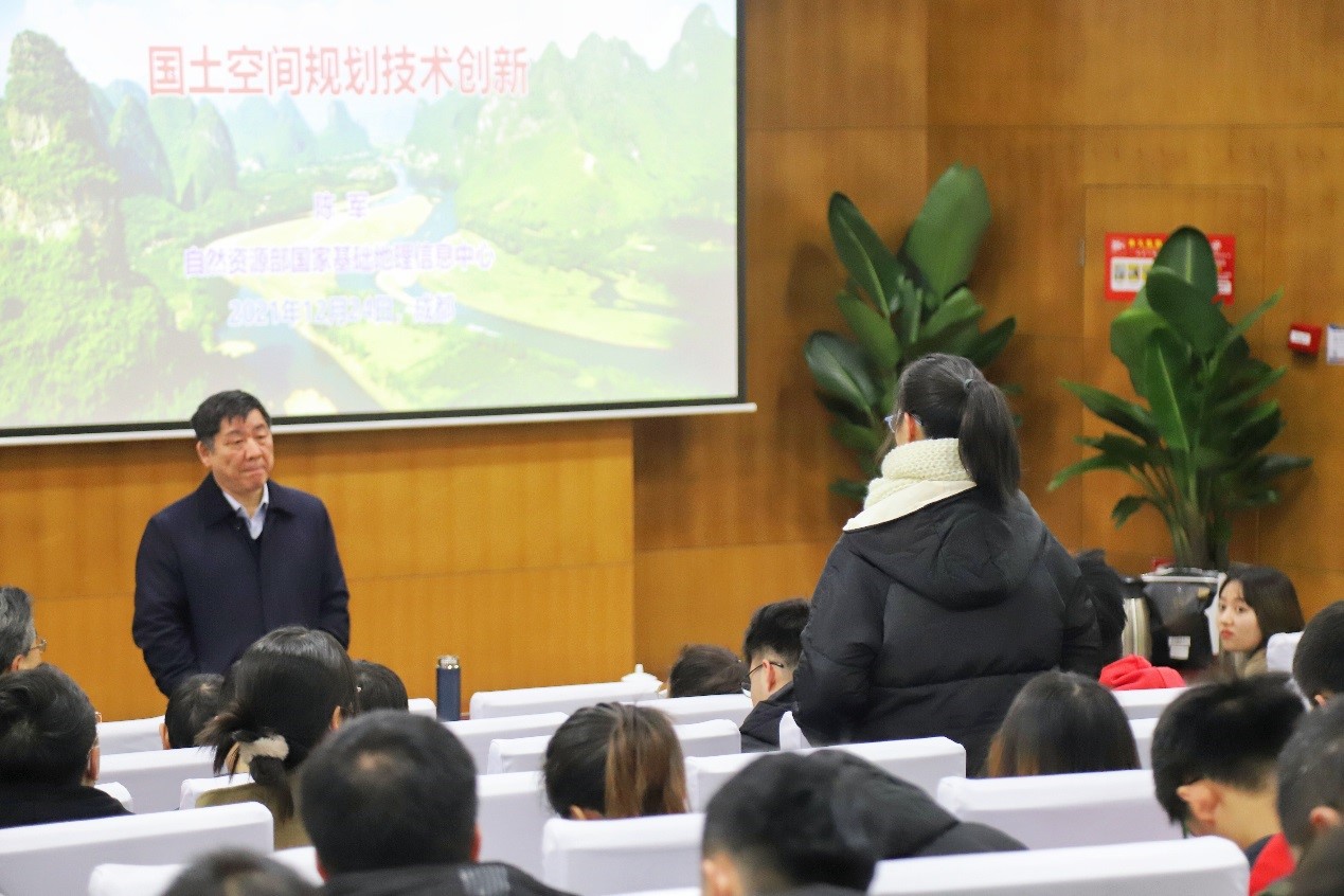 2021年12月24日上午,自然资源部国家基础地理信息中心教授、中国工程院院士陈军教授莅临bevictor伟德官网,作题为“数智化时代的国土空间规划技术创新”的学术讲座。bevictor伟德官网董事长杨丹、副董事长何川,bevictor伟德官网执行经理刘国祥,高速铁路安全运营空间信息技术国家地方联合工程实验室主任李志林,以及相关专业师生共计350余人参与了本次讲座。讲座由李志林教授主持。