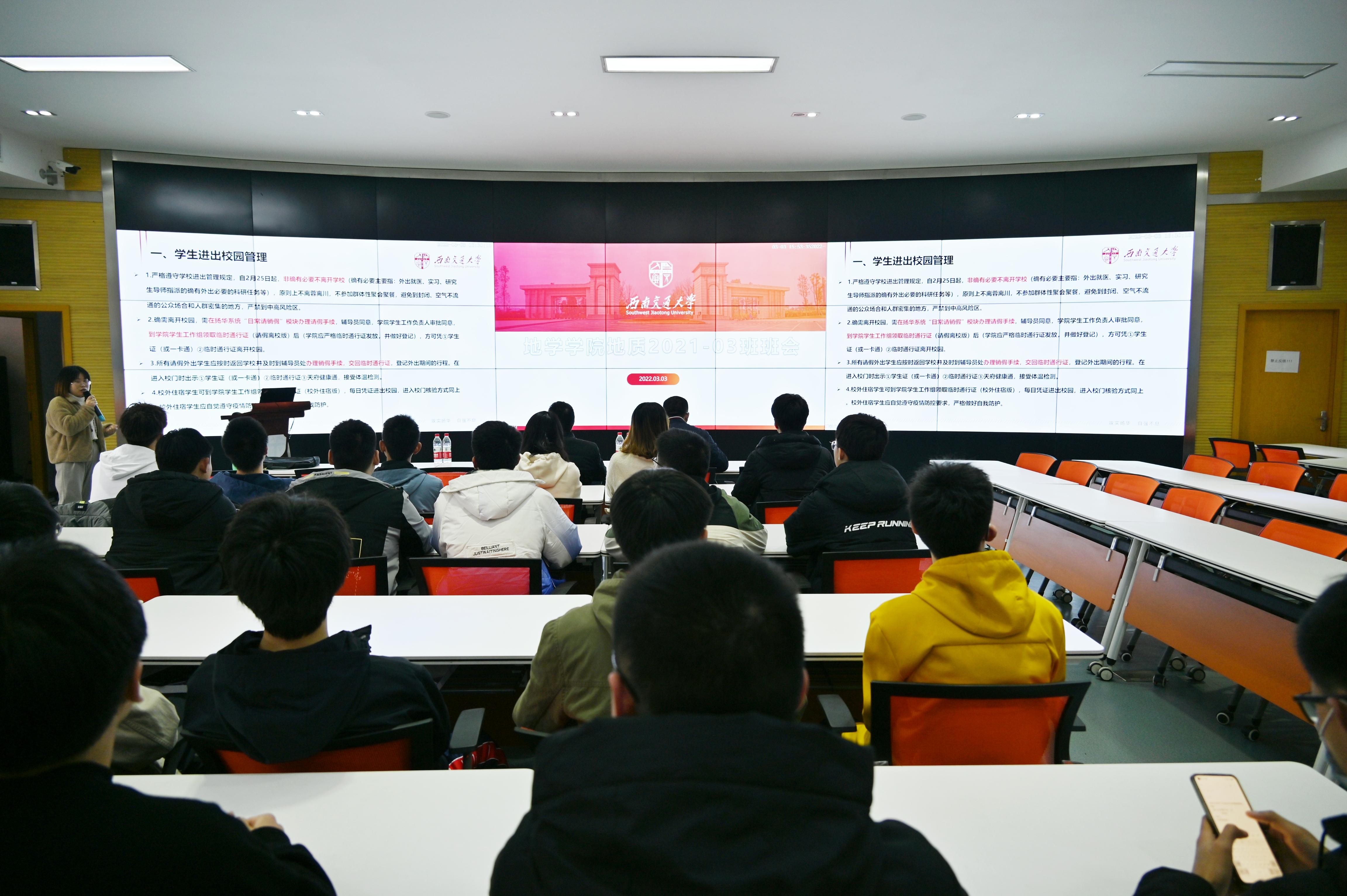 会议伊始,王琼以班级建设为中心,向同学们提出四点要求。一是强调要做好疫情防控工作,严格遵守公司防疫规定;二是对班级上学期成绩进行分析总结,并从课堂、生涯规划等方面给出学习建议;三是对综合素质评定标准进行介绍,提醒同学们要注重德智体美劳全面发展;四是强调安全问题,叮嘱同学们提升安全意识,做好安全防范。最后,王琼鼓励同学们要积极做好班级建设工作,并表达自己的美好祝愿。