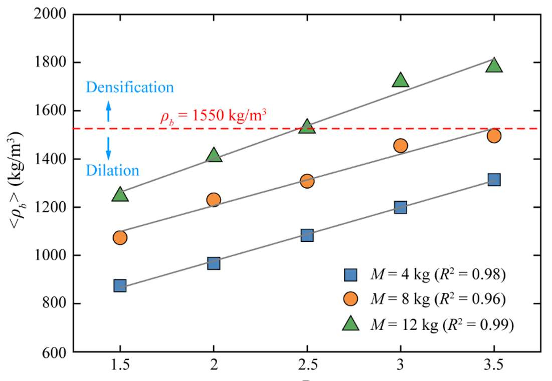 图1 所有工况下颗粒流主体部分的时间平均动态堆积密度变化特征