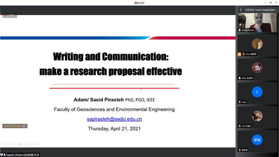 随后,由Saeid教授为大家分享其研讨主题:“写作和交流:让研究方案更有效”。研讨内容具体包括理解和设计一个科学方案、研究方案的内容、选择一个研究主题、何时何地提交你的科学方案、研究类型以及研究方案模板。