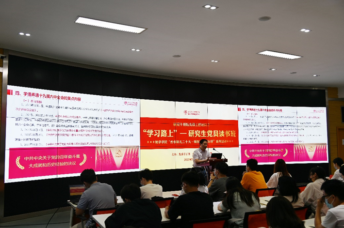最后,文强对本次讲座进行总结,希望参会同学们在讲座结束后能静下心来认认真真读原著、学原文,通过原文、原著进一步加深对十九届六中全会精神的理解,以优异的成绩迎接党的二十大胜利召开。讲座结束后,各参会党员纷纷受益良多。
