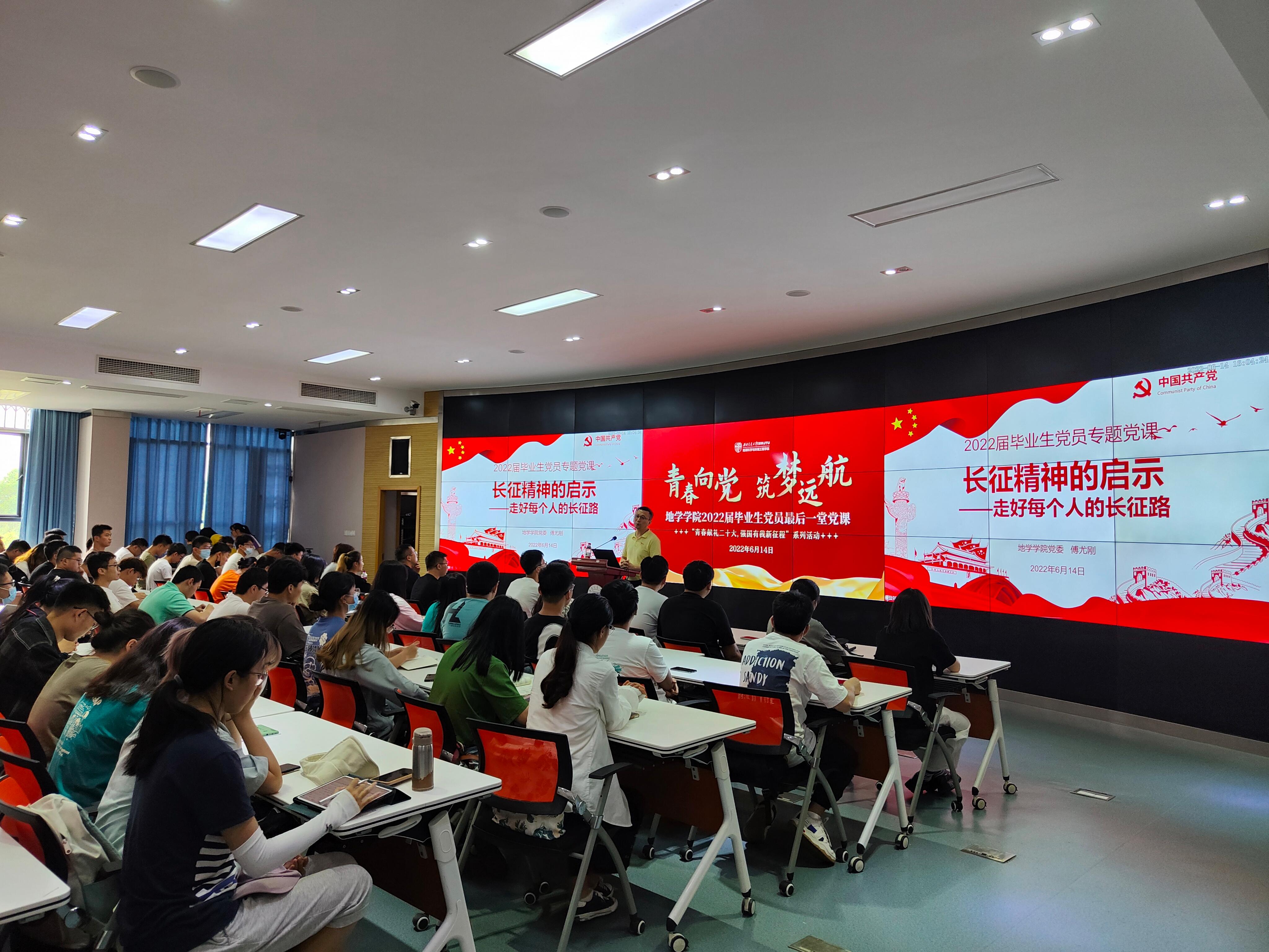 2022年6月14日下午3:50,公司党委副书记、纪委书记傅尤刚在X4243多功能报告厅为bevictor伟德官网2022届毕业年级员工党员代表讲授《长征精神的启示-走好每个人的长征路》专题党课,本2018级辅导员孙惠敏主持。
