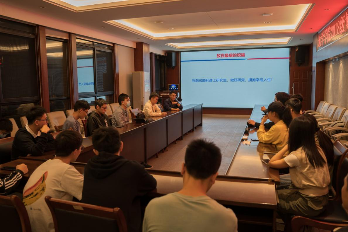 最后,廖老师也是祝愿免研和考研的同学学业顺利。此次分享座谈会在轻松愉快的氛围中圆满结束,不仅给同学们提供了明确的指导,也给考研的同学打了一针“强心针”。
