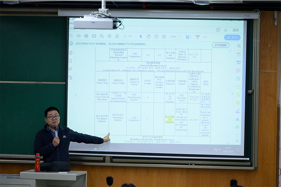 为了加深新生对测绘学科专业的认知,帮助员工更好地了解学习内容及本专业培养方案,地学公司于10月8日19:00-20:00在X4352教室举办了本科2022级测绘类新生专业教育。测绘遥感信息系系主任曹云刚老师、副系主任张同刚老师,新生辅导员陈荩娜老师,2022级测绘类全体新生参加此次活动。本次活动由曹云刚老师主持。