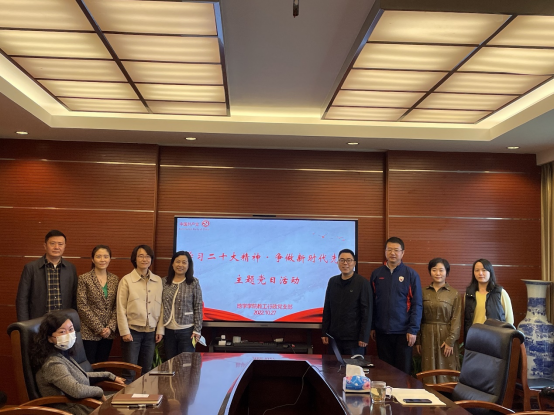 为深入学习宣传贯彻党的二十大精神,把公司教职工的思想认识统一到党的二十大精神上来,10月28日下午,教工行政党支部在X4531,召开主题党日活动,全体支部党员、机关工作人员参加活动。