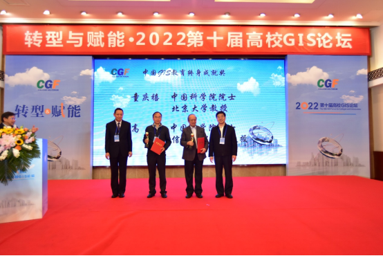 童庆禧院士、高俊院士(西南石油大学王泽根教授代为领奖)获中国GIS教育终身成就奖